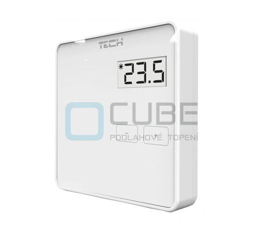 Aktuální teplota je zobrazována na displeji. Pomocí tlačítek plus a mínus lze změnit zadanou teplotu v zóně na stálou teplotu nebo teplotu s časovým omezením, ale také zobrazit teplotu podlahy, pokud je připojen snímač teploty podlahy. Časový harmonogram se nastavuje v regulátoru. Na termostatu lze aktuálně změnit hodnotu a po změně harmonogranu se obnoví původní nastavení.
