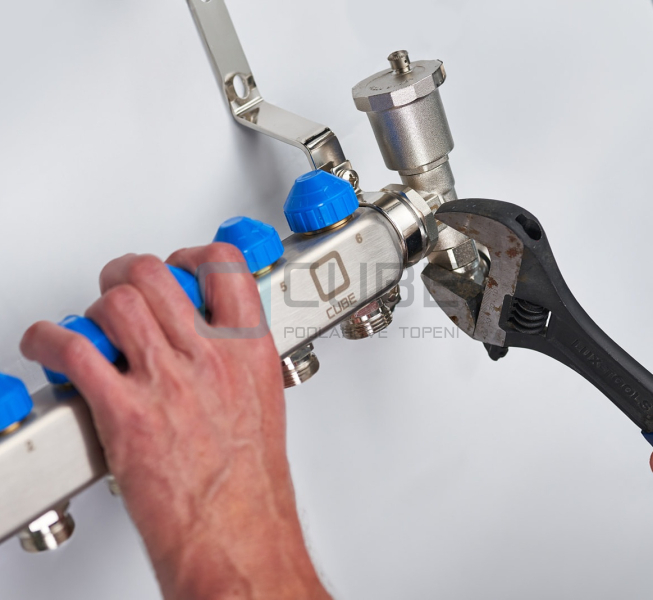 Ponúkame Vám veľmi kvalitný produkt Nemeckej výroby, ktorý prezentujeme pod našim obchodným názvom CUBE. Vyznačuje sa veľmi precíznym spracovaním a vysokým dôrazom na kvalitu. Veľmi citlivé regulačné prietokomery zaručujú vyrovnanie prietokov pri rôzne dlhých okruhoch. Vratné telo je osadené ventilmi s manuálnymi uzávermi, ktoré je možné následne zameniť za elektrické pohony - tie následne komunikujú s reguláciou (priestorovými termostatmi). Vďaka gumovému tesneniu na každom komponente je veľmi jednoduchá a rýchla montáž (stačí iba utiahnuť). Napojenie jednotlivých slučiek do rozdeľovača je riešené klasickým spojom 3/4 Euroconus (je potrebné iba vybrať vhodný priemer 16x2,17x2,18x2 atď.).